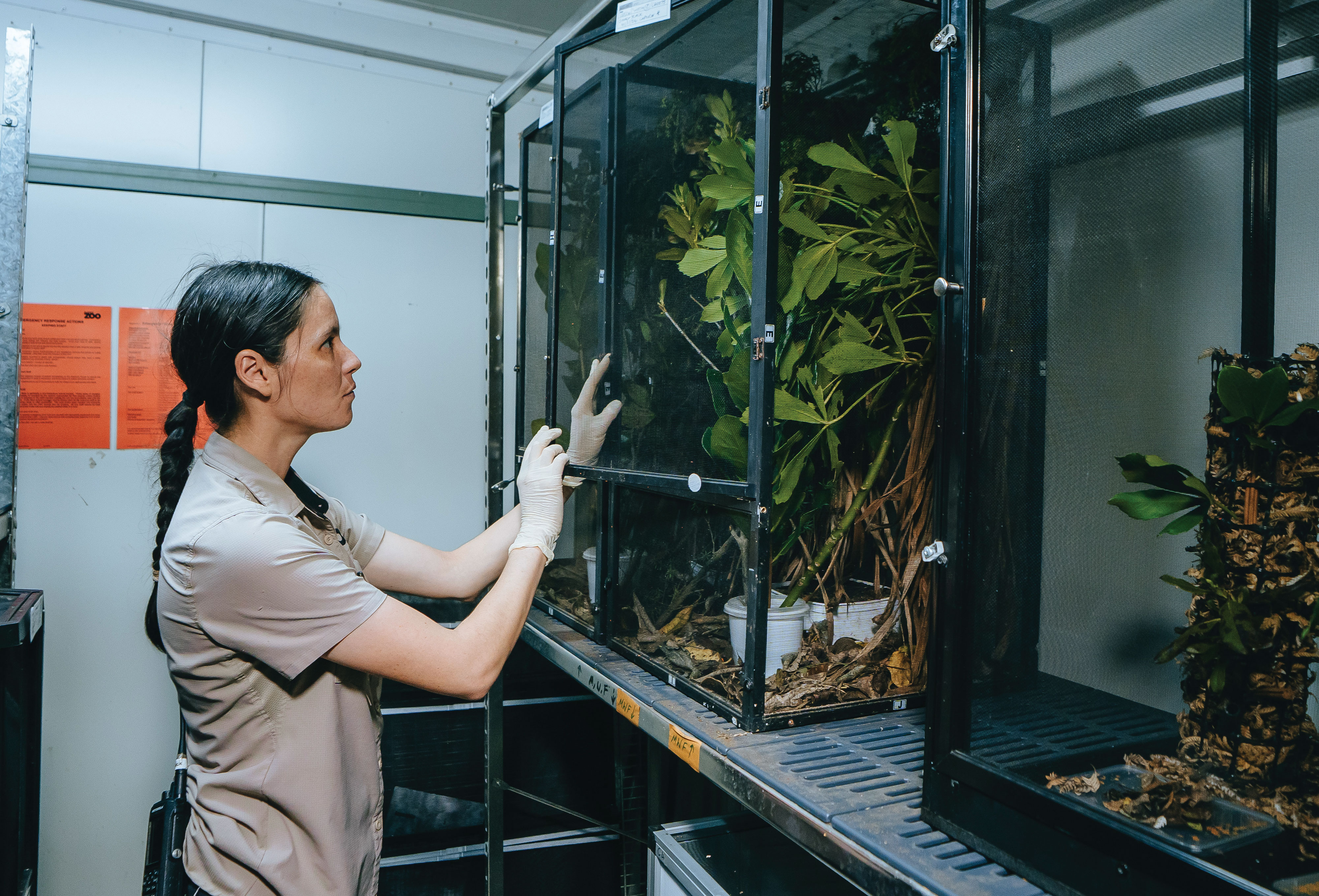 McFarlane (today Auckland Zoo’s ectotherms curator) was part of a team at ZSL London Zoo with permission to work with giant wētā in the early 2000s, focusing on chemical signals called pheromones. Incidentally, they discovered a large gut parasite that created asymmetry in their bodies and affected their ability to grow.