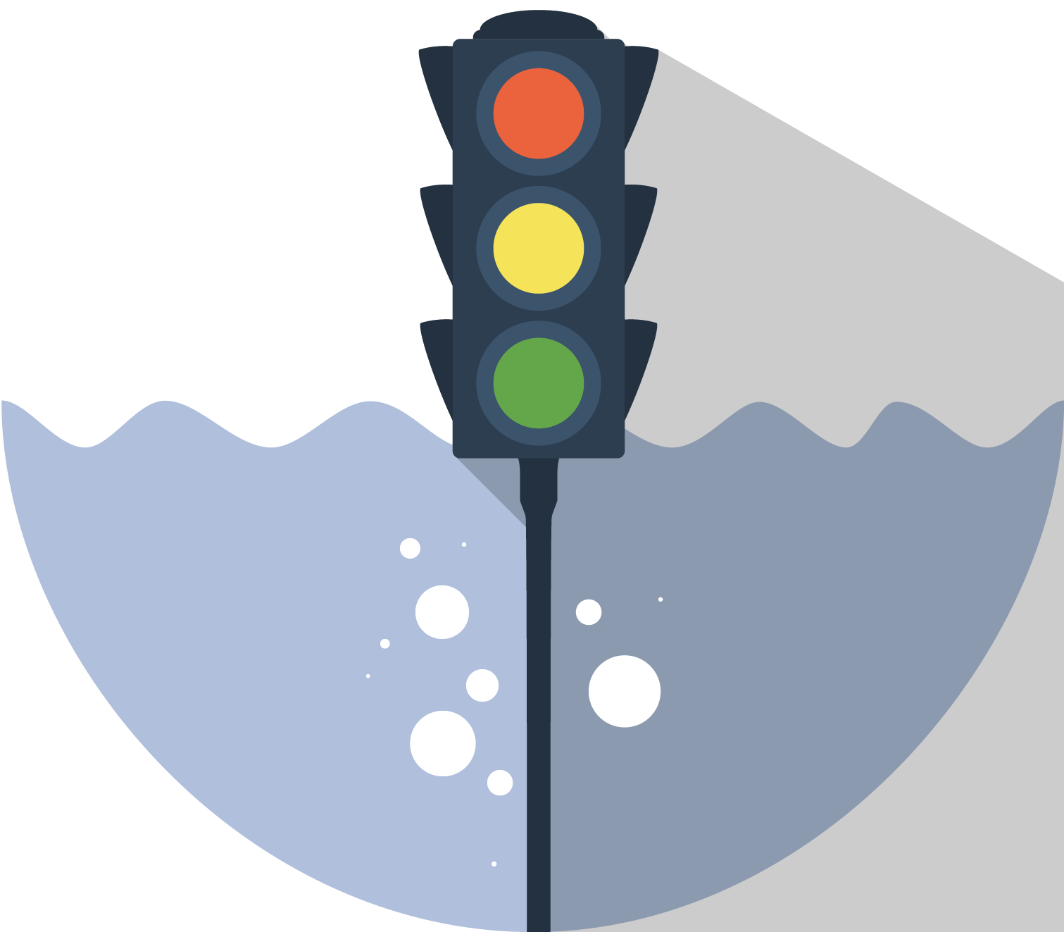 In the two lowest grades, orange, water exceeds the threshold 20 to 30 per cent of the time, and red—well, you shouldn’t even go there.
