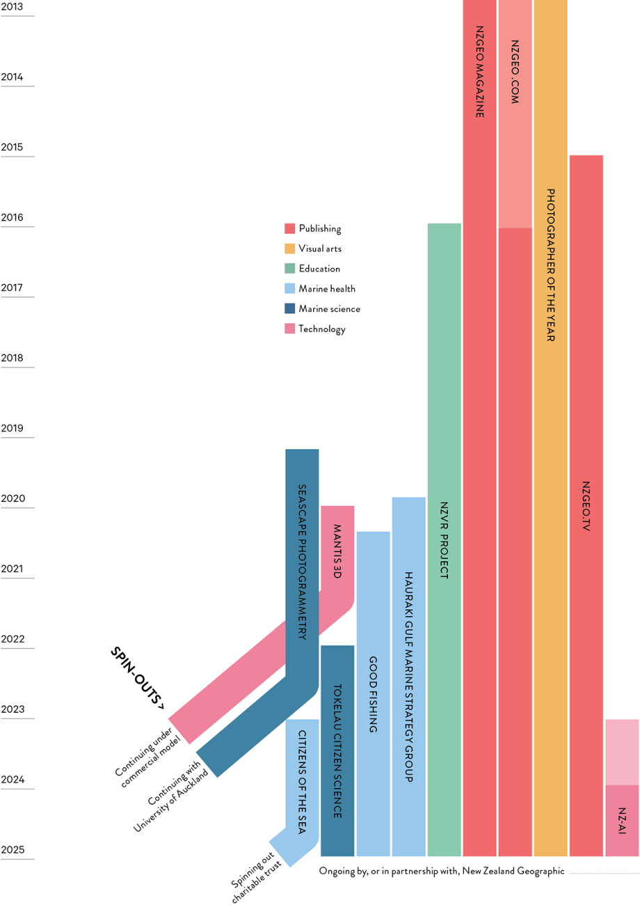 In addition we have developed innovative reef-monitoring technologies with University of Auckland, established a new charity with Cawthron Institute called Citizens of the Sea that uses environment DNA to monitor ocean health across 1.5 million square kilometres of the South Pacific, co-developed citizen science technology to support conservation in Tokelau with Conservation International, and made a number of submissions to government—based on our reporting—to inform the Fast Track Bill, the Hauraki Gulf Marine Protection Bill and the (now mothballed) Fair Digital News Bargaining Bill.